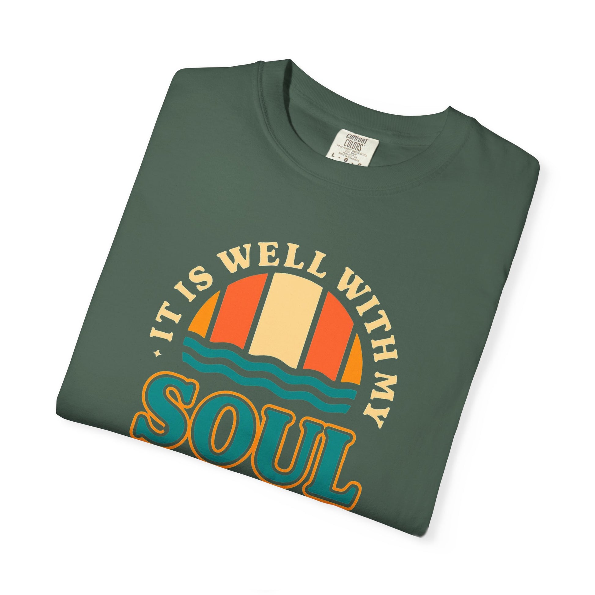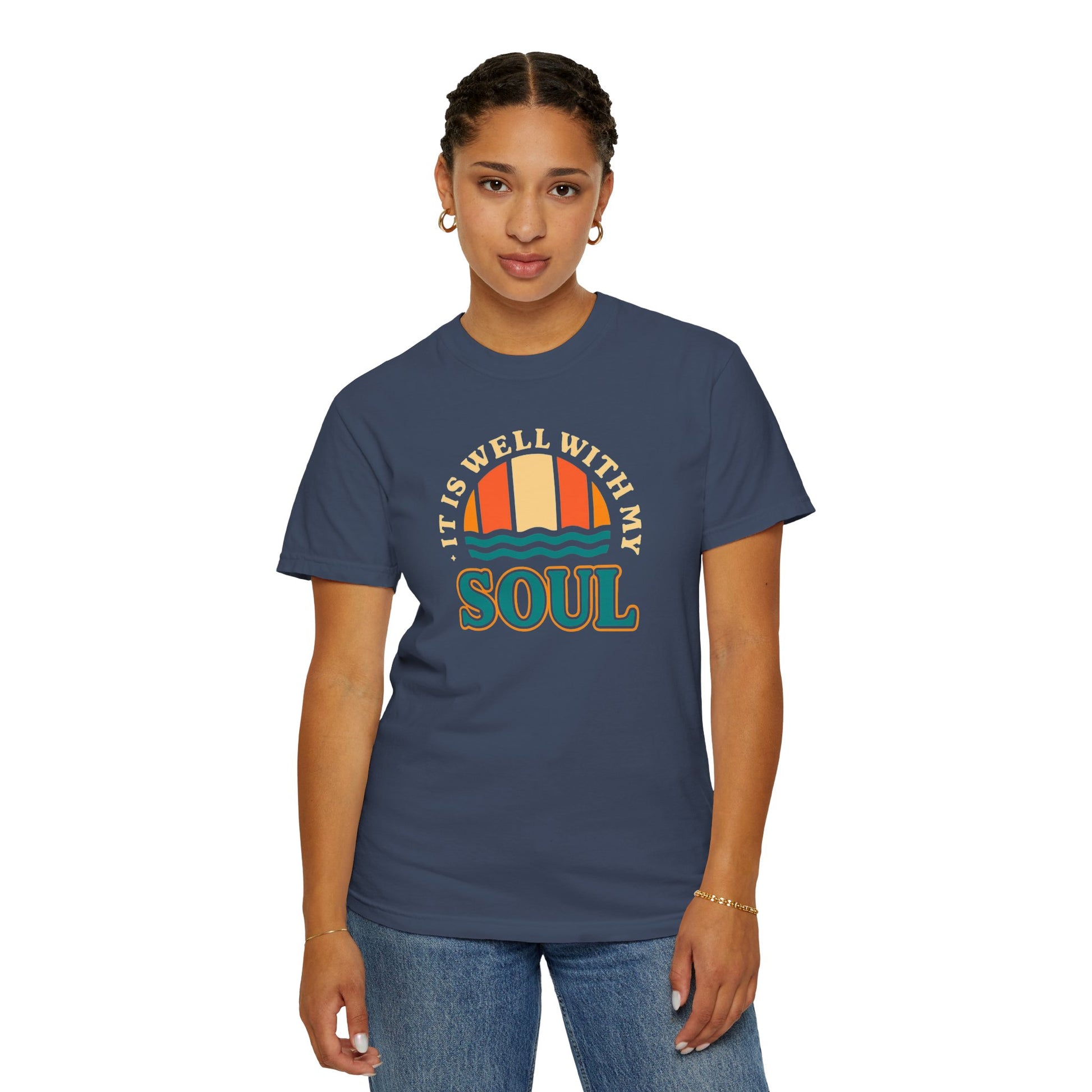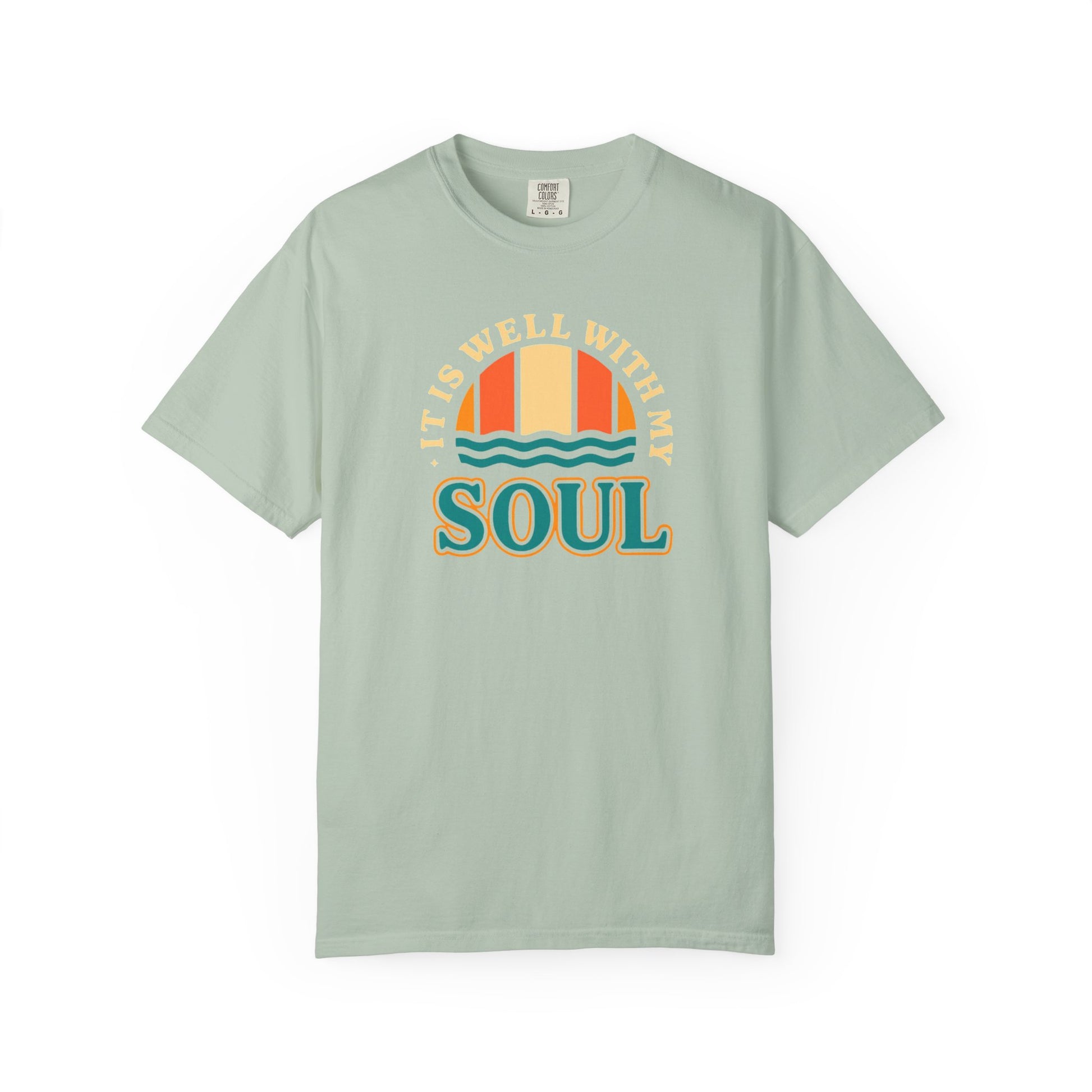 This unisex garment-dyed T-shirt offers an inviting, relaxed vibe that is perfect for everyday wear. The soft, pre-shrunk fabric and relaxed fit make it an ideal staple in anyone's wardrobe, suitable for casual outings or semi-formal gatherings. With its unique design, this T-shirt resonates with those who appreciate comfort and self-expression, making it a great gift for friends or family. Perfect for celebrations, picnics, or spiritual gatherings, it brings a sense of calm and positivity, making it a perfect choice for occasions like Easter, summer outings, or simply a cozy day at home.